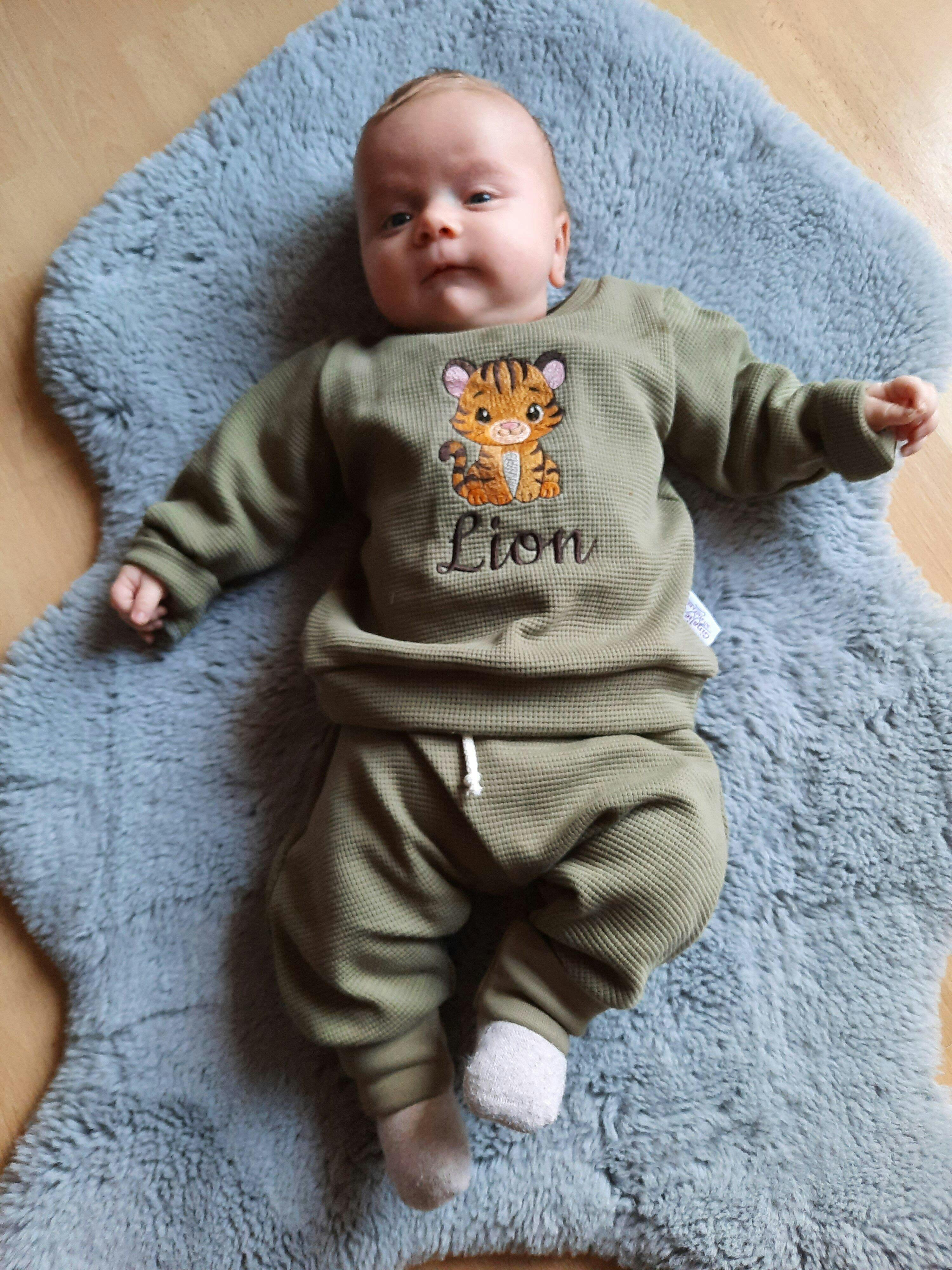 🧡 Personalisierter Kinderpullover aus Waffeljersey für Babys und Kinder mit gesticktem Tigermotiv und optionaler Namensstickerei. Bequeme, handgemachte Kinderkleidung mit vielen Farbvarianten. Ideal als Geschenk oder Alltagsliebling.